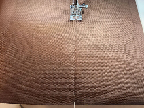 - Using a ½” seam allowance, stitch a 29” strip to either end of the 25” strip. The cotton canvas fabric we used was the same front and back; if you have a more distinct fabric, your fabric should be right sides together when stitching.