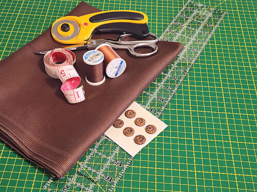 - SIX ⅜” – ⅝” buttons; optional for pocket top accents; we used ⅝” wooden buttons – another option would be metal rivets – look for rivets with a longer shank