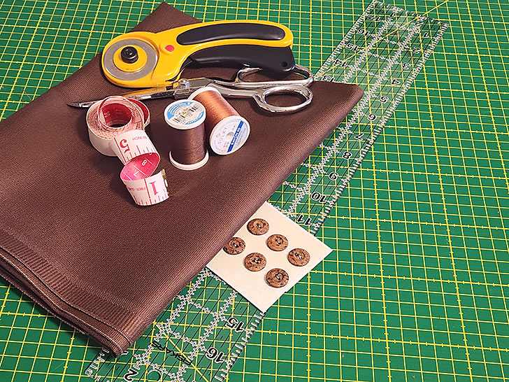 - 1 yard of 45”+ cotton canvas or similar mid-weight fabric, such as denim, outdoor fabric or even a sturdy poly/cotton poplin; we used a standard 45” cotton canvas in chocolate brown