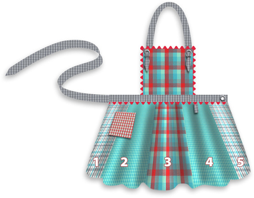 TWO 3½” x 18″ strips for the neck tie - Find the fat quarter for the pocket, waistband back, and bib lining (Tiny Plaid in Red in our sample). From this fat quarter, carefully cut the following (you will use nearly the entire piece):