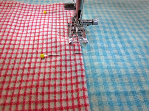 - Using a ½” seam allowance, sew this short vertical seam. Press the seam allowance flat flat.