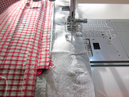 - Re-thread the machine as necessary with thread to best match the pocket in the top and to best match the skirt fabric in the bobbin. Slightly lengthen the stitch.