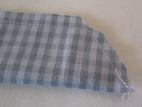 - Trim the corners and turn the tie right side out through the opening. Poke out the corner points so they are nice and sharp, a long knitting needle, chopstick or point turner works well for this.