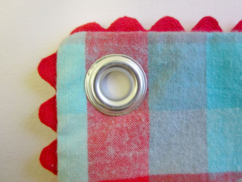 - Three extra large (7/16″) metal grommets with appropriate setting tools; we used a Dritz Extra Large Eyelet Kit in Nickel