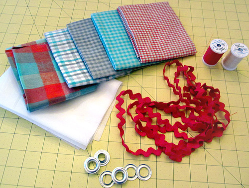 - 2 yards of jumbo rick rack to coordinate with fabrics; we used red