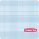 NOTE: There’s no need to remove the selvedge you may find on either fat quarter. If there, it will be very narrow and will be enclosed in the French seams used to form the skirt. - Find the fat quarter for the center skirt panel and bib (Buffalo Plaid in Aqua in our sample). This buffalo plaid was a one way plaid, so care had to be taken to keep the direction consistent. If you have a similar direction motif, first place the squared fabric on your cutting mat. Cut an 18″ x 11″ wide panel from one side, keeping the plaid as centered as possible. The remaining panel is the center skirt panel. From the 11″ wide panel, fussy cut an 11″ x 11″ square for the bib.