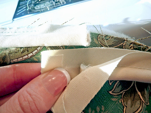 - Fold under the end of the piping tail fabric to create a clean edge. Wrap this folded end under and around the head end, overlapping about ½”.