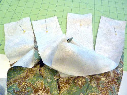 - Lightly pin. Machine baste the pair together around all four raw edges. You will now be able to treat the two pieces as one.