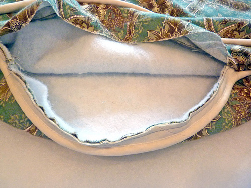 - Peel back the piping fabric on the tail to expose the cording underneath.