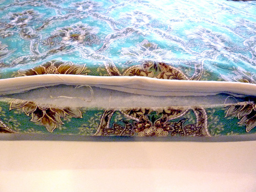 - The corners are handled similarly to how you attach bias binding to a quilt (we have a good tutorial if you are new to this technique). You’ll sew almost to the corner, stop and backstitch. Then, keeping your needle in the down position, pivot 90˚, fold the excess fabric of the ring along the seam and into the corner as you turn, then continue down the next side. Repeat this process at each corner.
