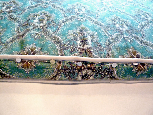 - Pin in place all around, but leave an approximate 10-12″ opening along one of these 49″ sides for turning the cover right side out.