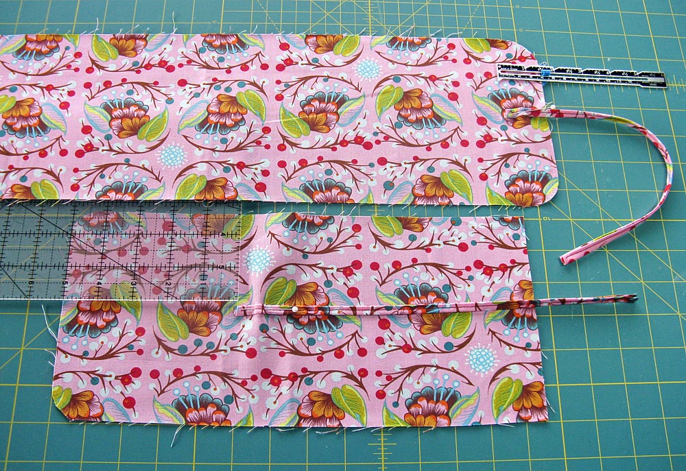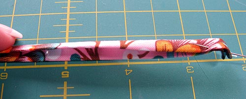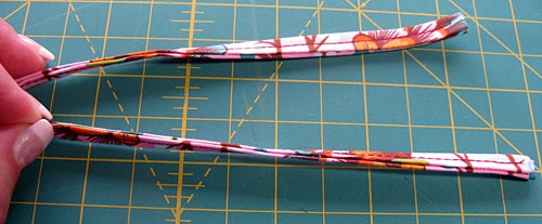 NOTE: If you prefer, you can skip this step and use narrow bias binding for the ties or ribbon. If you choose to use coordinating ribbon, make sure it is 100% cotton. Anything else could melt should it accidentally touch the hot tool.