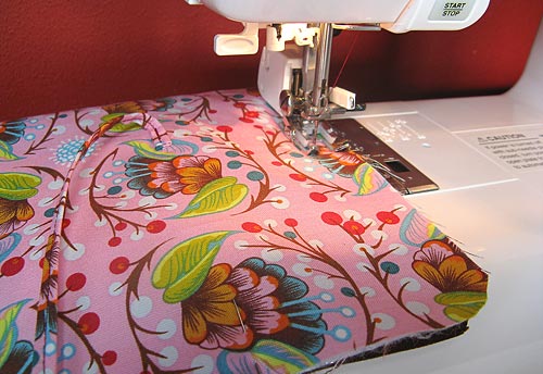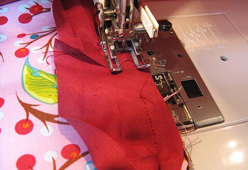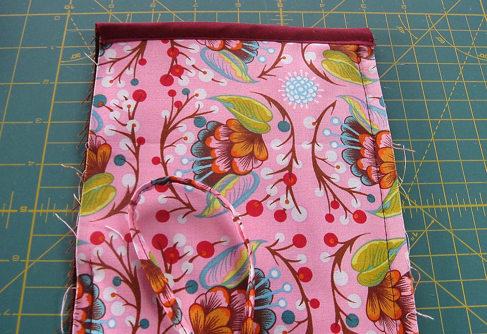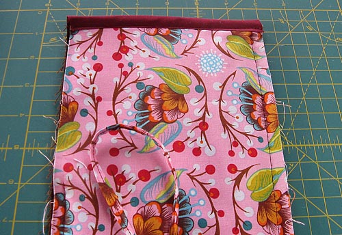 - When you have your placement set, pin in place, then edgestitch in place across the bottom only.