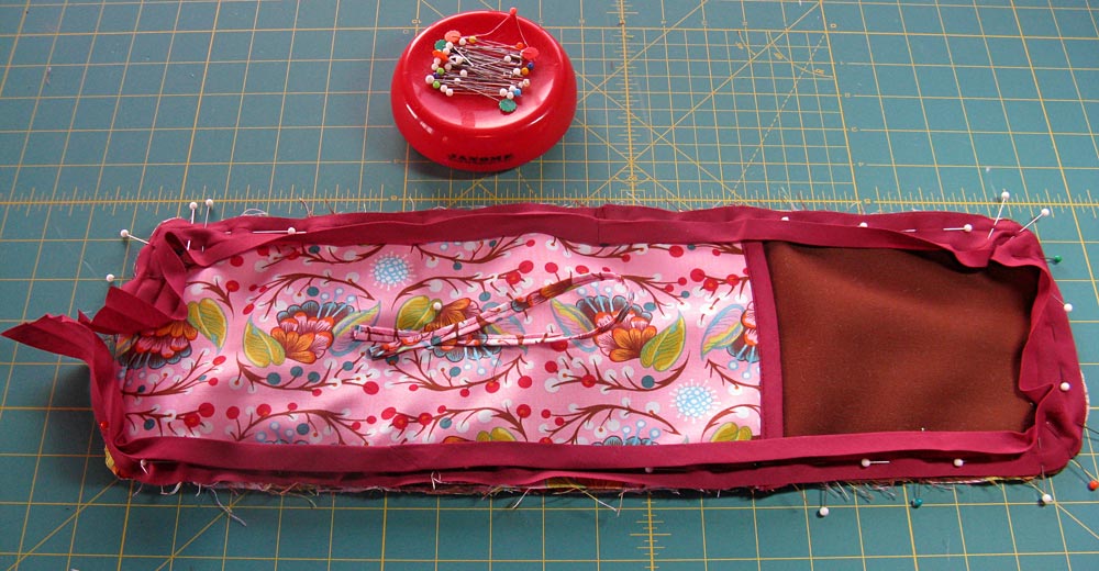 - The binding should now be a perfect fit against the case. Fold this loose section of the binding back into its original shape and pin in place.