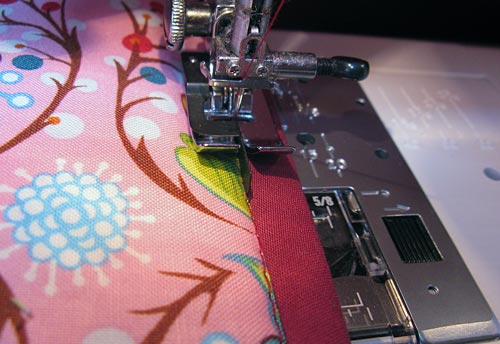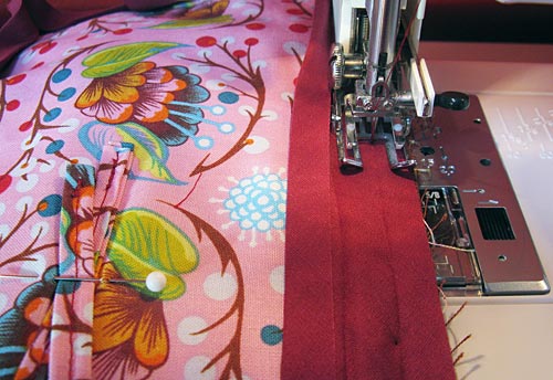 - Edgestitch your binding in place, stitching on the inside of the case (the same side on which you made your first binding seam). I used my Janome Ditch Quilting foot to allow me to stay very straight and as close to the edge as possible.