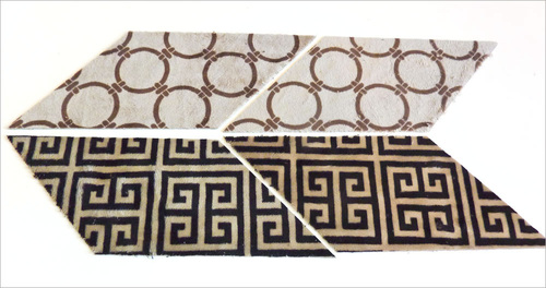 - Below you can see our four layers (right side up, right side up, right side down, right side down) after they have been cut. Remember, as we mentioned above, we made a mini version of the scarf in order to be able to capture the steps within the frame of the camera. Your pieces will be much larger than shown here.