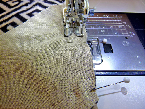 - Fold in the raw edges of the remaining gap so they are flush with the sewn seam. Pin in place.