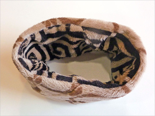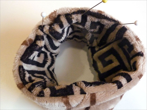 - Using the 6″ gaps still remaining in the side seams, adjust the scarf so the entire loop is now right side out.