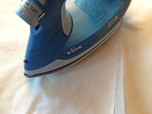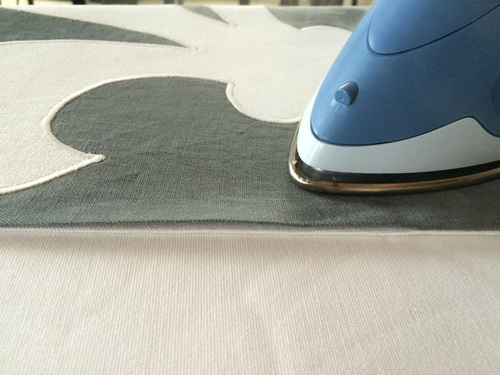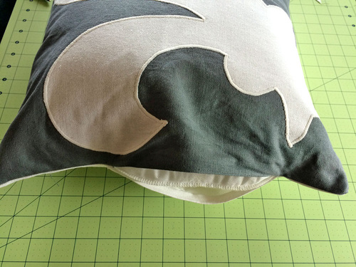 - Turn the cover right side out through the opening and press flat, turning in the raw edges of the opening so they are flush with the sewn seam.