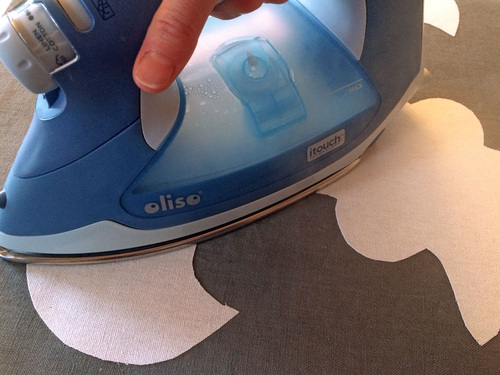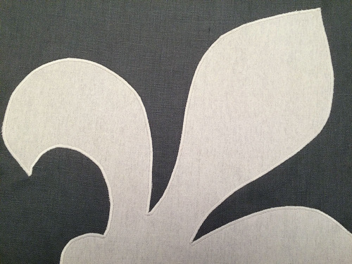 - Following manufacturer’s instructions, fuse the Fleur-de-lis in place on the right side of the front panel.