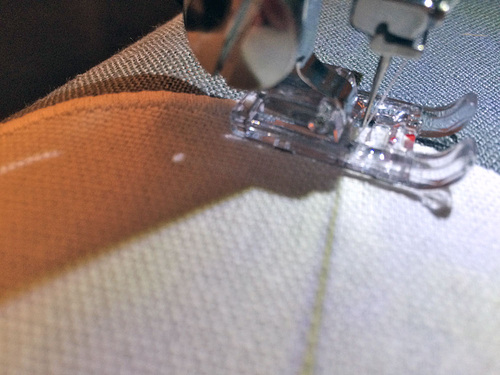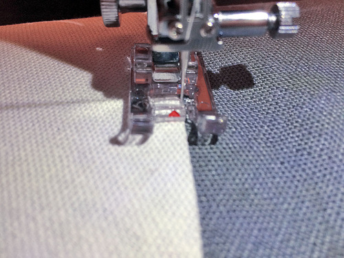 - Using a ½” seam allowance, sew around all four sides. Remember to pivot at the corners and to lock your seam at either side of the opening.