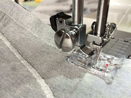- Slow and steady wins the race when it comes to appliqué. We like the Janome Satin Stitch foot, which is see-through and has a handy red arrow you can use as a guide to insure your stitching stays even along the edge of the template. The Janome Open Toe Satin Stitch foot is another great option with a wide opening at the front of the foot so you can clearly watch your appliqué stitches forming. Don’t be afraid to stop, with your needle in the down position, and adjust your fabric as you move around the curves.
