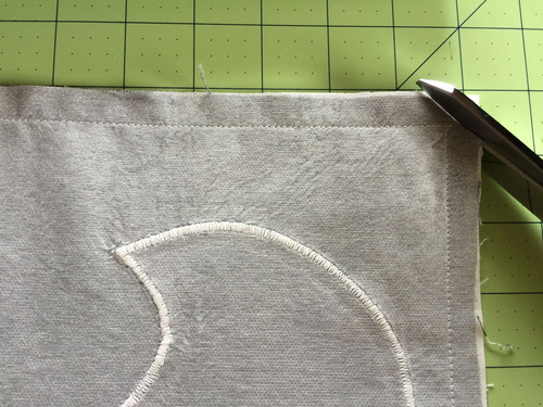 - Watch the edge of your appliqué as you turn, turn, turn. Pick a point on your presser foot (if you don’t have an arrow like our Janome foot) so you can keep the appliqué’s edge moving along the guide line at all times.