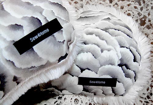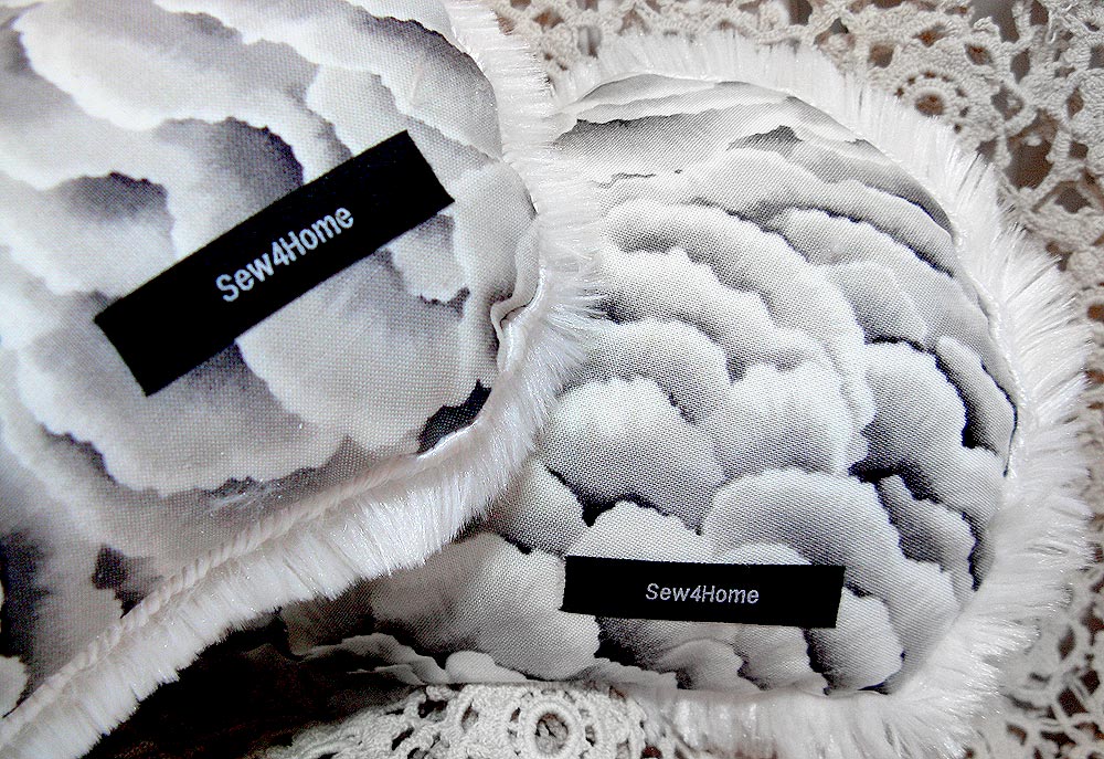 NOTE: I actually found this final step to be the hardest part of the whole pillow project! Hand-stitching the cotton to the Minky was a little like trying to sew butter. Luckily, the fluff and fibers of the Minky are very forgiving, and if you are careful to match your thread color, any less-than-perfect stitches are hidden in the fleece. I had the best luck, as mentioned above, keeping my stitches as small as possible. I started on one side, sewed to the other, then doubled-back to try to catch any little openings. - We added Sew4Home labels to our clouds so everyone knows they belong to us.