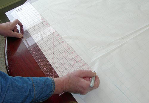 - This is where those graphing skills from Mrs. Peterson’s math class come in handy. Moving square-for-square, and using your base line as a guide, count in from the side and either up or down from the base line and mark points on your large grid fabric in the exact same positions as your template grid.