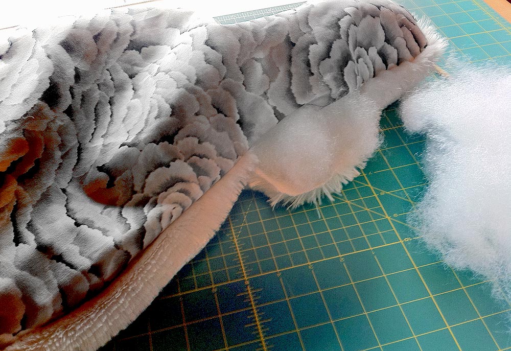 NOTE: This is a messy step as the Minky Eyelash loves to shred. I trimmed right over my wastebasket and still had to go over myself with a lint roller when I was done! - Turn the pillow right side out. Smooth out all the seams around the curves from the inside with a long, blunt-end tool, like a large knitting needle or a chopstick.