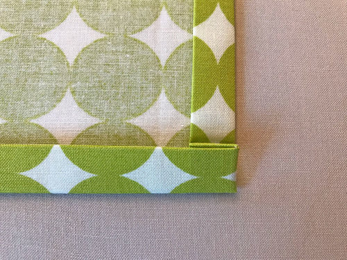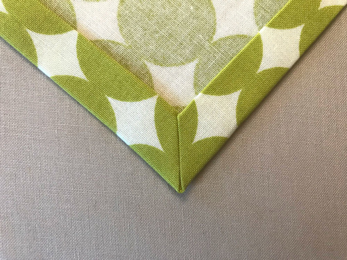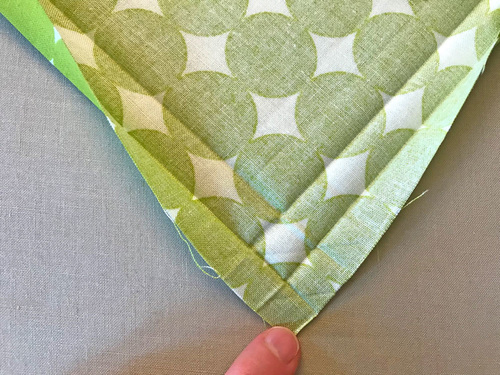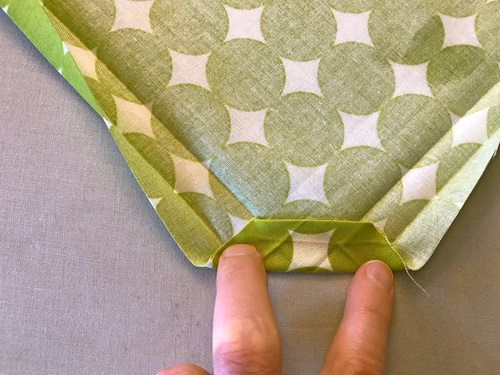 - Refold along the original crease lines and press – first one fold then the second fold. If you’ve been careful with your measurements and pressing, this re-fold will create a diagonal line where your two finished edged meet, making a neat split corner.