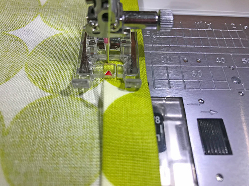 - Remember to stitch all the way into each corner, stopping at the diagonal, and make a sharp pivot.