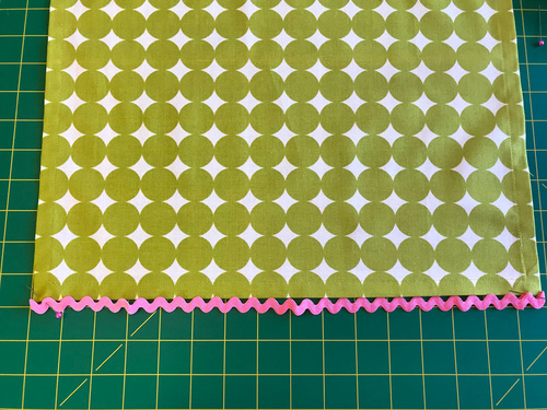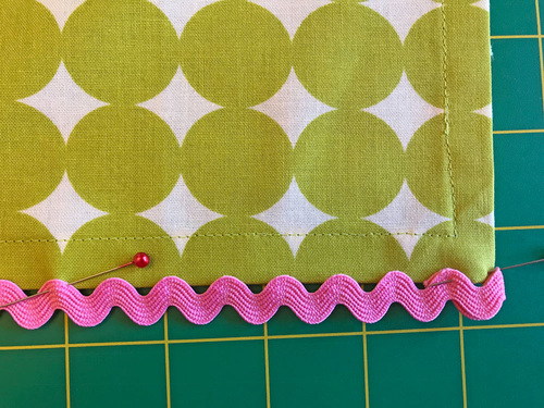 - Pin the rick rack in place at each corner first.