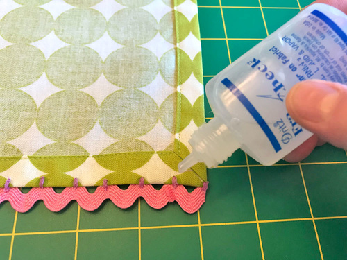 - That said, we did also choose to add a dot of seam sealant at the back of each tack … just because we like to be super safe. You could also add a dab of sealant along the cut edge of the folded back rick rack at each end.
