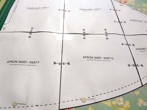 - Download and print out the NINE pattern pieces, which have be bundled into one PDF file for your convenience: Floral Apron Pattern Set.