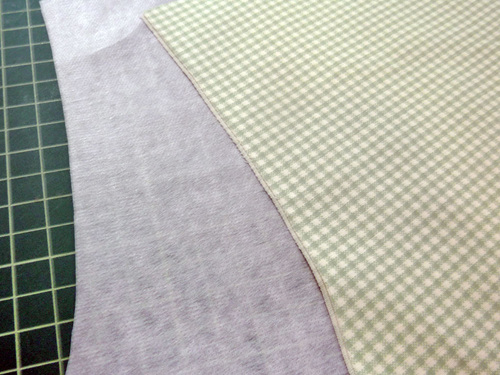- Find the front and back bib pieces and the interfacing. Lay the interfacing on the wrong side of the one of that will be the front bib piece. Following manufacturer’s instructions, fuse the interfacing in place.