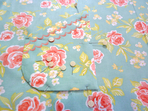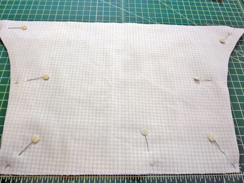 - Repeat to place the right pocket in the same manner. Pin each pocket in place along the sides and around the bottom. The slanted top remains open.