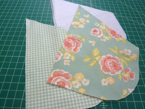 NOTE: If you prefer not to fold your interfacing, you can use one of the cut fabric pieces as a pattern to cut the bib interfacing as a flat piece.