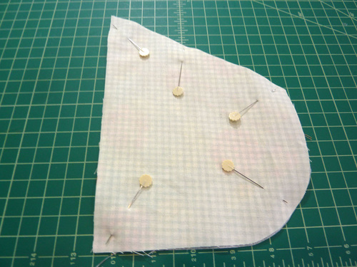 - Match up the interfaced fronts with the plain backs, placing each pair right sides together with all raw edges flush. Lightly pin in place to keep the layers from shifting.