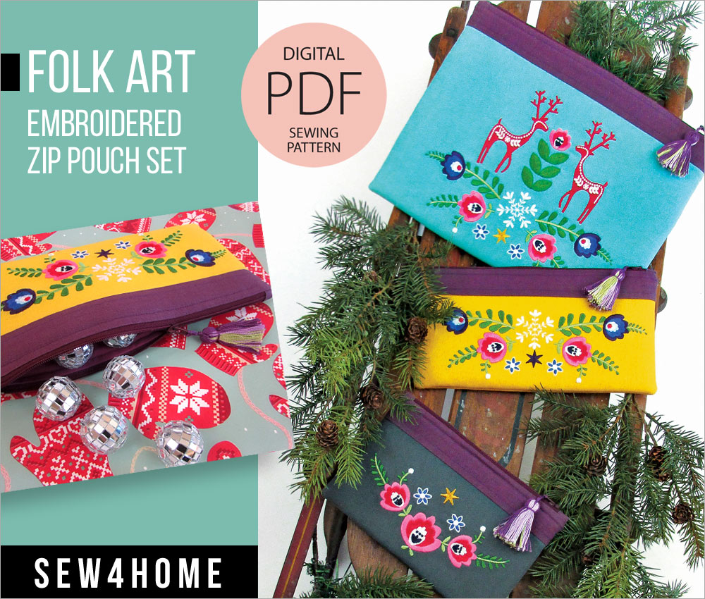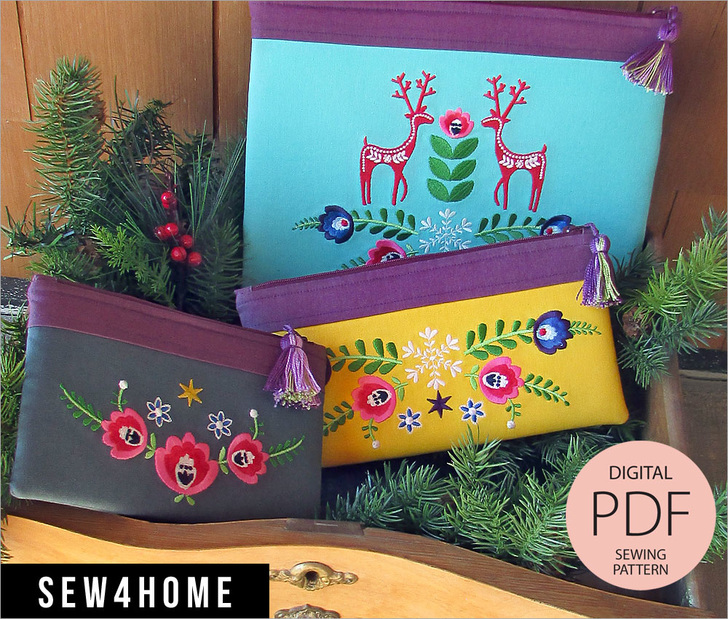 As an ePattern, it includes instructions and photos to take you through each step of the construction. Within your instructions will be a link that will take you to a special hidden page on Sew4Home.com from which you can download the custom Folk Art embroidery files in any of the seven main embroidery formats: ART, EXP, JEF, JPX, PES, VIP, AND VP3.