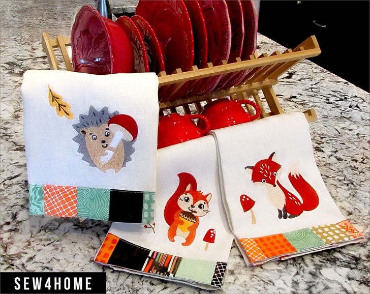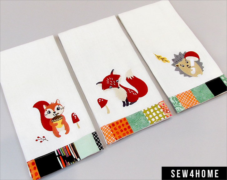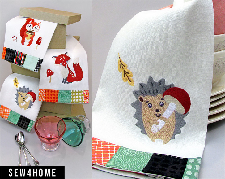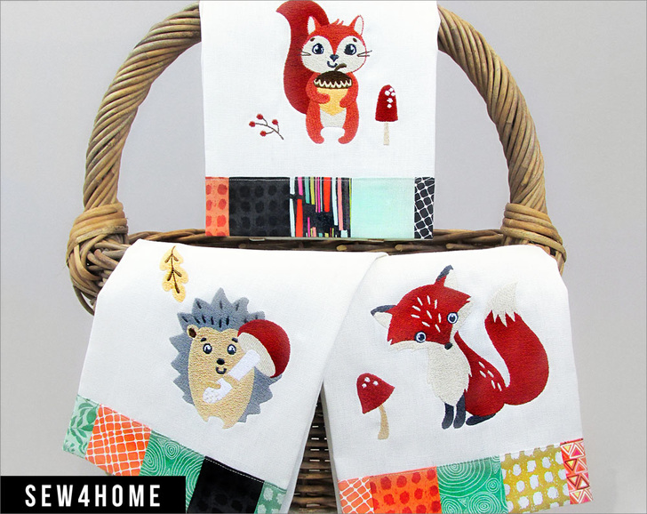 A fox, a squirrel, and a hedgehog walk into a kitchen. It sounds like the beginning of a joke, but it’s actually the beginning of a great project! There are three custom machine embroidery designs included: Henry the Hedgehog, Sally the Squirrel, and Francis the Fox, as well as – of course – full instructions for the adorable kitchen towels.