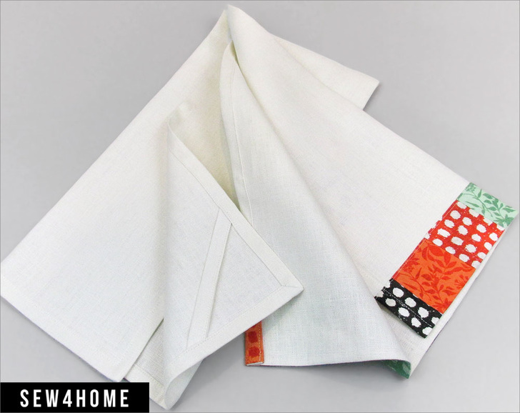 @Sewz4fun – Yes, the towel base fabric is a linen and the border is quilting cotton. We used mini charm squares, but you could cut your own squares from scratch as well.