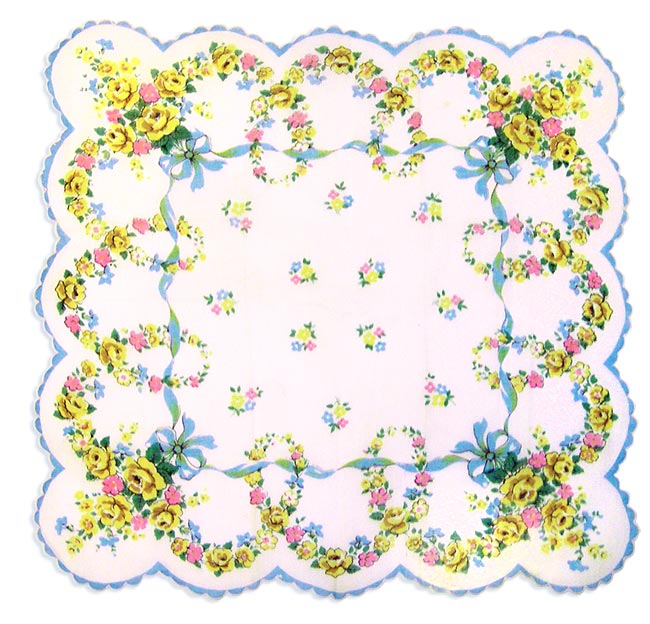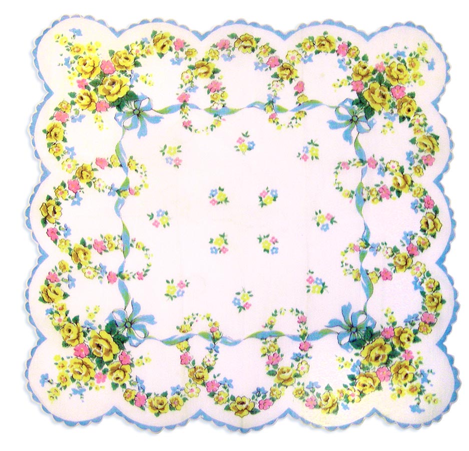 I’ve seen darling pillows made from souvenir hankies, ring bearer pillows made from intricate lace hankies, even super cute kitchen curtains made from a number of hankies patch-worked together into panels. So have fun …. and “bless you” for giving your hankies a new lease on life.