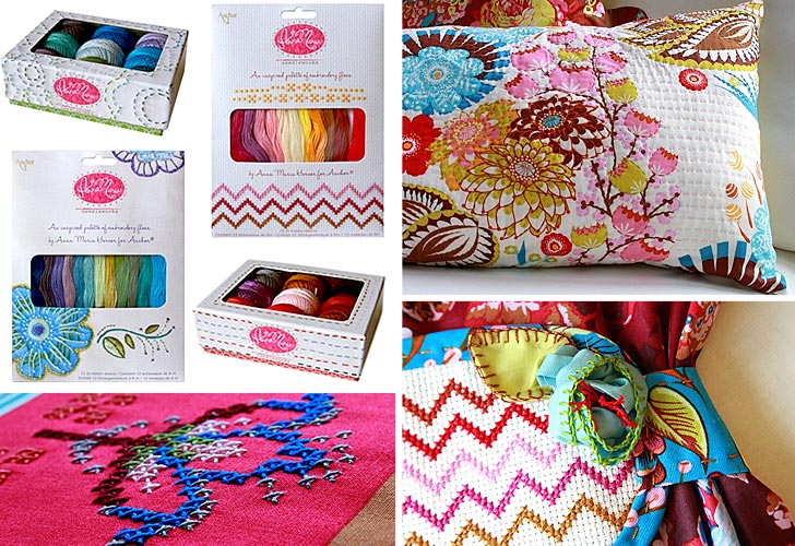 AMH: It was like getting to design a box of paints! So, so wonderful, and not as easy as it sounds. Choosing from the already gorgeous (and huge!) Anchor palette was both a joy and a challenge. I had to think about what most people would want in a palette collection as well as put my own mark on specific color choices. I did use Loulouthi as an inspiration, so that was helpful. Color choice seems to be a big challenge for lots of folks, so hopefully these collections are helpful and inspiring. I am so excited to be part of what I would call a reawakening of needlework arts. There have been huge advances in design and manufacturing in the yarn and fabric world, and I think we are just now starting to see interest return. It’s really thrilling for me, particularly, how this all rolls together with fabrics and quilting; what a gorgeous combination of efforts!