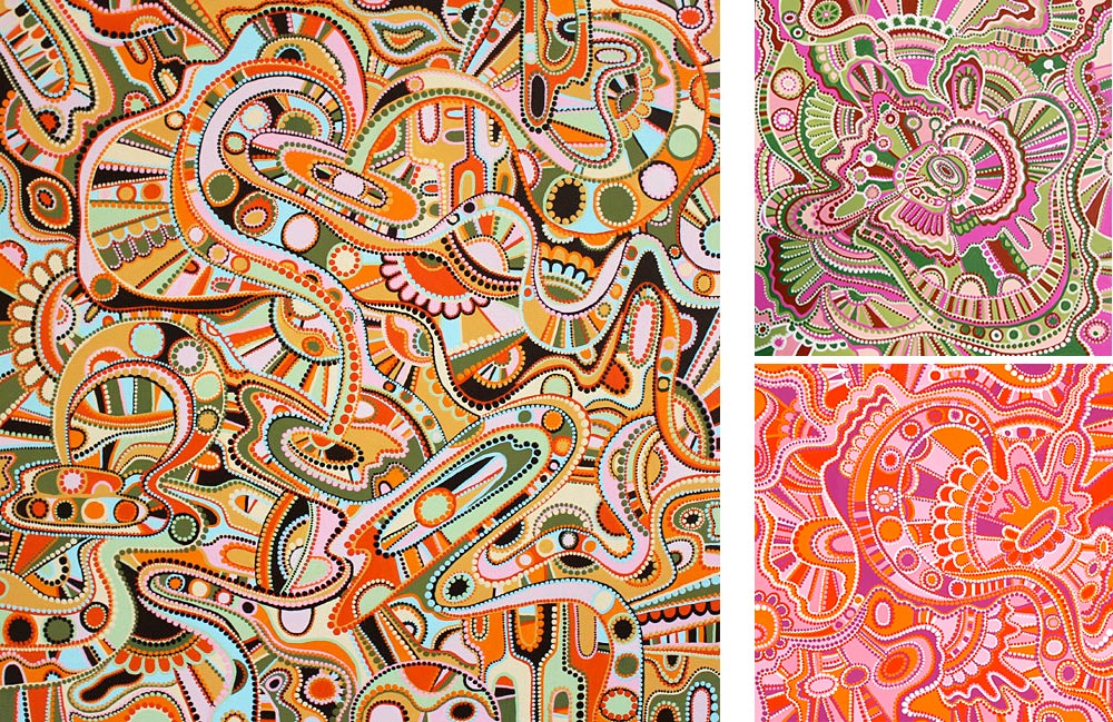 JM: Design is only half my career; the other half is fine art. I have painted for years, and, I don’t know why, but the dot has always been the major building block of my paintings. The shape just organically migrated right into my surface design work and took up residence there as well. There is something inherently feminine about round shapes, obviously, and I see a certain “girl-power” in both my paintings and designs. Maybe it’s because I began my artistic career later in life than some, but painting and design have always been a source of empowerment for me on many levels. It’s a gift to live a life in which I create every day.