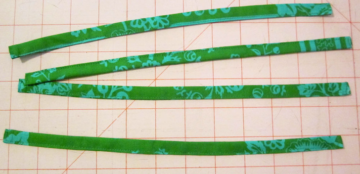 - For each strip, fold and press each 1½” end ¼”.