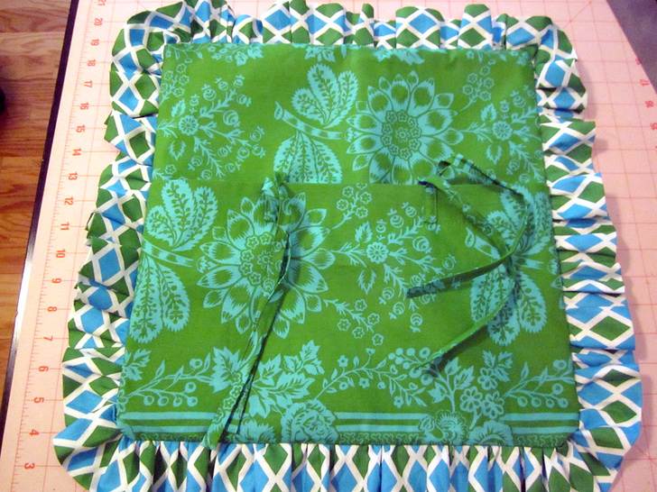 - Place your finished front/ruffle piece on your work surface right side facing up.