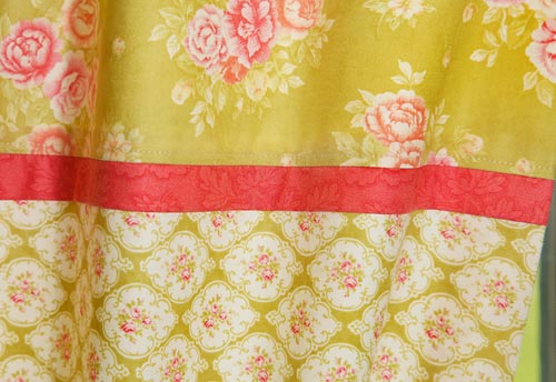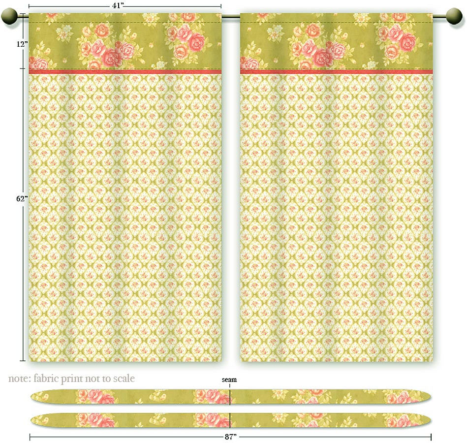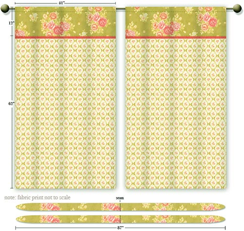 • Fabric for top of panel and tie back: 1 yard of 44-45″ wide fabric: we used Joanna Figueroa’s Fresh Cottons by Fig Tree Quilts for Moda Fabrics in Apple Green Bouquet