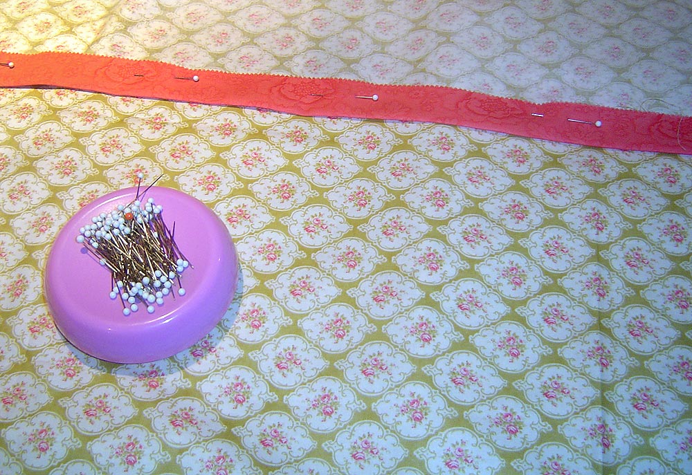 13. Again, align the top raw edge of the lining with the top raw edge of the top of the panel. Pin in place.