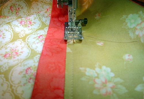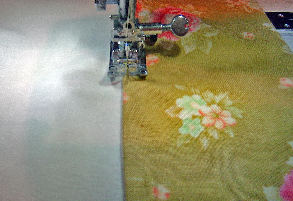 3. Using a basting stitch, sew the flange to the bottom panel fabric within the ½” seam allowance, ie. at about ¼”.